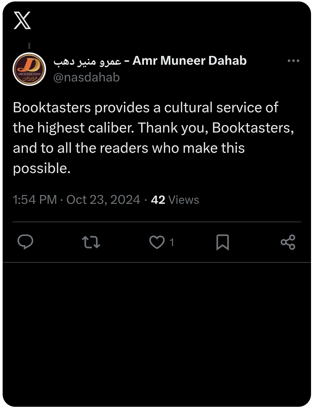 – A review posted by one of Booktasters reviewers on a pre-agreed platform according to our reviewing criteria.